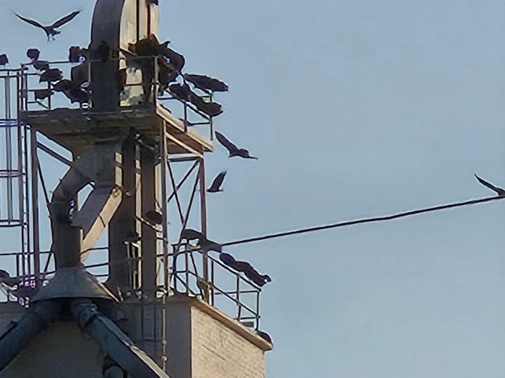 So I have been in Oklahoma for 5 days now. Today, Monday the 6th, I moved to the Texas Panhandle. So far, this has been a fine trip. The tour features six missions. I have enjoyed the interaction I have had with all of them. We spent last week getting to know each other and sharing our presentations. Watching others and receiving feedback on our own has helped me fine-tune my presentation and add a couple of things.I had the opportunity to set up our display for the first time myself. (I cannot wait until Sherry gets here tomorrow so she can start that project.) We were hosted by the Christian Church in Freedom, OK. They were great hosts. The picture to the right is of buzzards roosting on top of the grain elevator. They were just across the street from the church. I was fascinated by them and so I share them with you.
