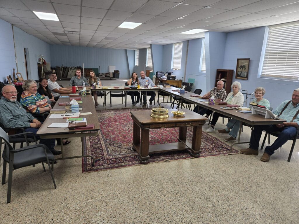 On Saturday, each mission headed off to its first assignment. I made my way to Laverne, OK. I was to present in Englewood, Kansas which was a half an hour away, but we stayed at Laverne. On Sunday morning I made my way to the little town of Englewood. It is a town of 50 or 60 residents. I shared my mission with them and then they put on a grand feast. I met some wonderful people, including Joyce (first lady on the right), who made as good a Waldorf salad as I have ever had. The presentation went well I think. It is a small church in a small town. To the left are those who were there. It was such fun that, as I had Sunday night open, I returned to hear another mission’s report.